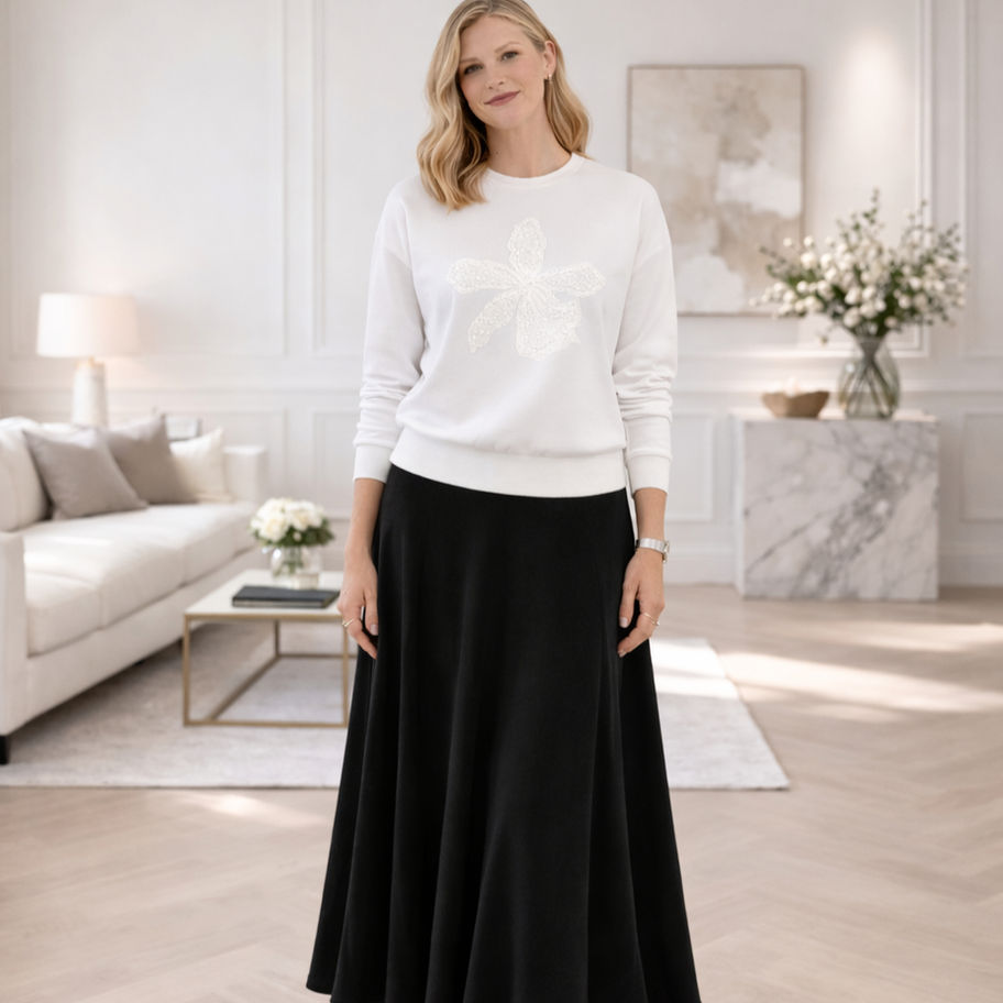 With a central applique trimmed in micro sequins for added sophistication, this sweatshirt elevates your casual weekend wardrobe effortlessly. Crafted to provide unmatched comfort, enjoy the softness of SC4415 as you lounge during your peaceful weekend.
